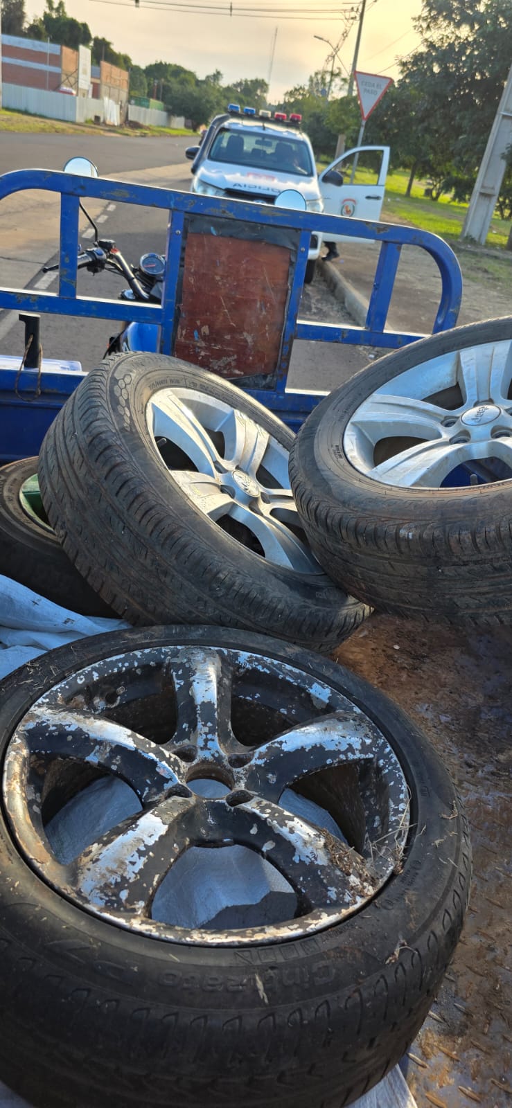 Agentes de la Comisaría 68° del Barrio Jardín del Sur realizaban patrullaje preventivo cuando divisaron a un hombre, identificado como Eric Martin Ortiz Dietz (25), quien conducía un motocarro de la marca Motostar, color azul, transportando diversos objetos. Ante la actitud sospechosa, los uniformados procedieron a la interceptación del vehículo para su inspección.