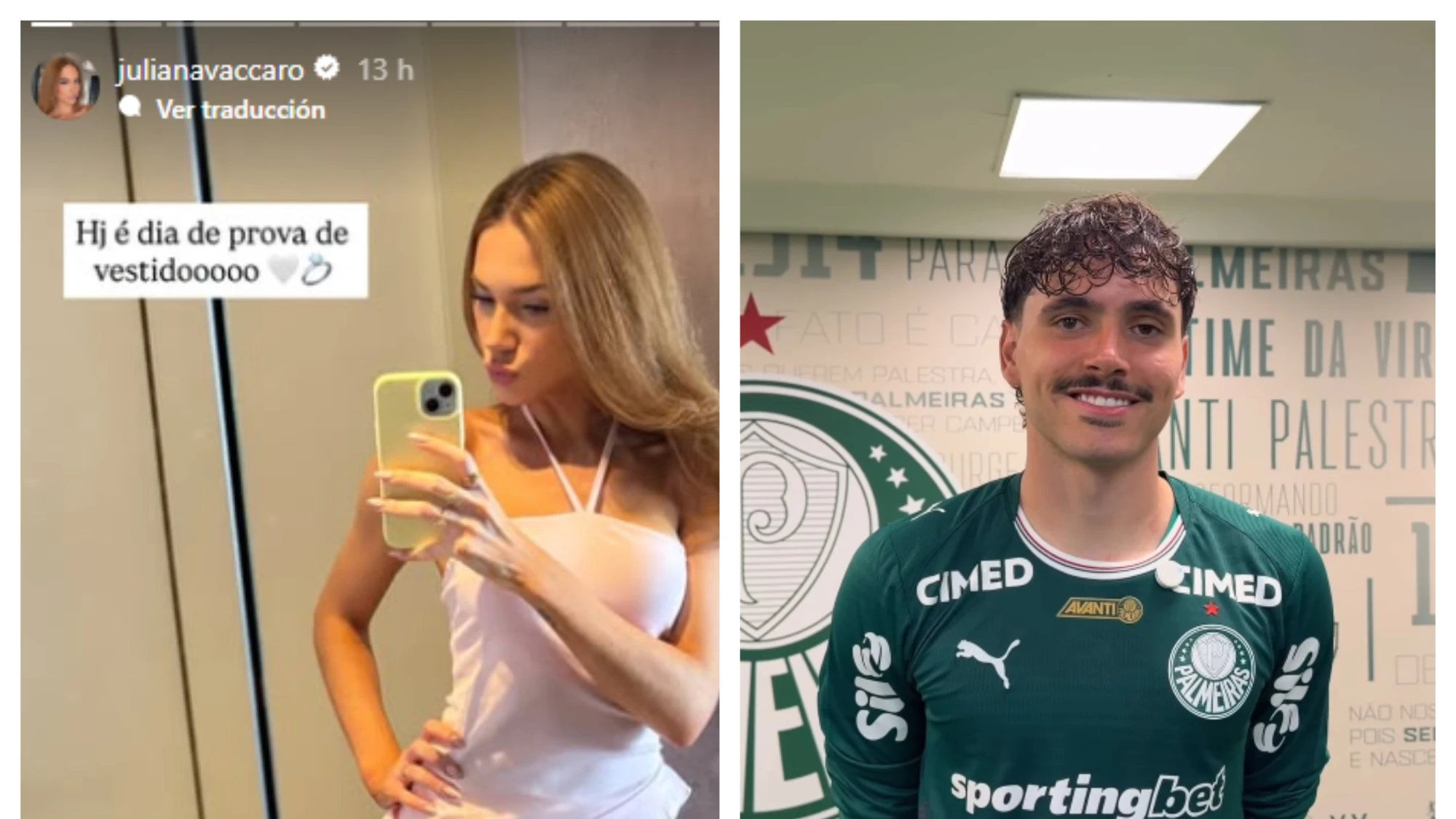 Según la creencia, el vestido de novia no se debe mostrar hasta el momento mismo de la boda. Después de las pruebas también publicó otra historia mostrando en su celular el momento en que ingresa al cambio de juego el 11, Magalhaes Prado.